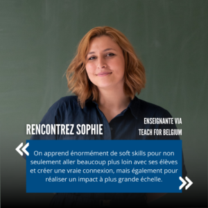 Pour ma part, j’ai donc d’abord fait 2 ans et demi dans une boîte de consultance. C’était une expérience très enrichissante et j’ai énormément appris, mais à un moment donné j’avais besoin de quelque chose avec plus d’impact social. J’ai basculé sur un poste de recruteur et de formateur pour des étudiant·e·s universitaires. J’aimais assez bien mais j’avais l’impression de donner des opportunités à des personnes qui avaient déjà toutes les chances dans leur vie et que les personnes issues d’un milieu socio-économiquement moins aisée avaient beaucoup moins de chances d’être sélectionnées. Et c’était notamment avec ces personnes-là que j’avais envie de travailler et de leur rendre quelque chose. L’enseignement me paraissait la voie par excellence pour le faire. De mon expérience en auditoire j’ai vraiment ressenti une passion pour l’enseignement, combiné à mon envie d’enrichissement social et de réduction des iniquités dans une société. Alors j’ai directement pensé à Teach for Belgium, que je connaissais déjà d’avant via deux alumni du programme.